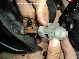 2. Jangan sepelekan kondisi tangki, rata-rata motor tua memiliki kerak / karat pada tangkinya. Kalo hal tersebut terjadi, tidak perlu tunggu lagi segera keringkan besinnya lalu cuci / kuras dalamnya. Tips untuk tangki motor tua, usahakan tangki bensin selalu dalam kondisi terisi seikitnya setengah atau penuh kalo sedang tidak dipakai dalam jangka lama. Ini penting untuk menghindari korosi besi bagian kosong tangki.